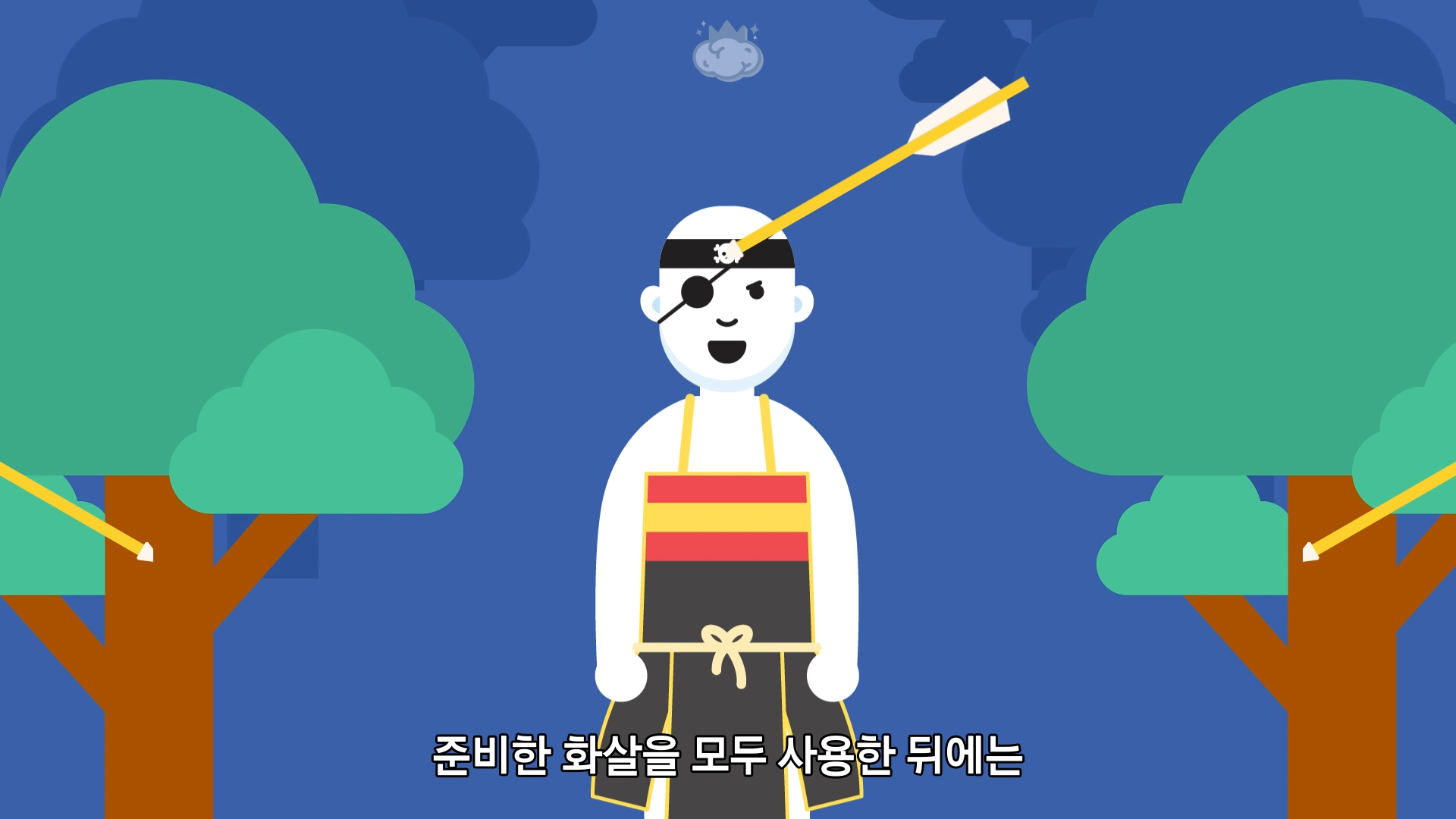나무에 꼽아둔 화살을 이용해 왜구를 물리쳤습니다