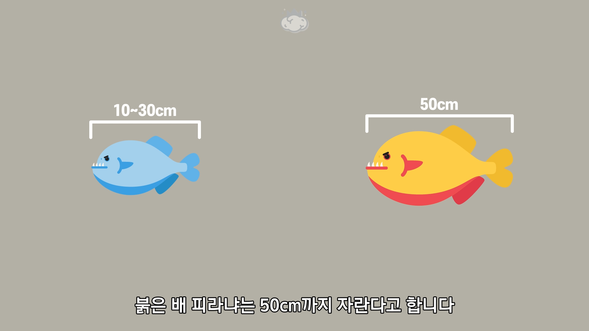 붉은 배 피라냐는 50cm까지 자란다고 합니다