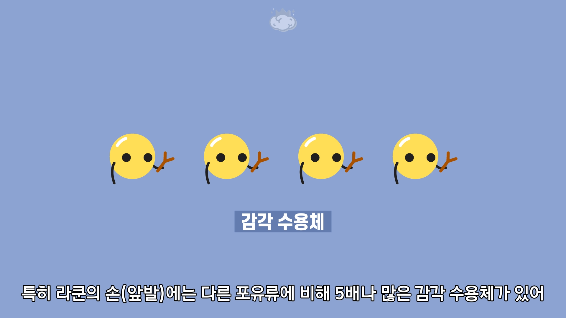 특히 라쿤의 손(앞발)에는 다른 포유류에 비해 5배나 많은 감각 수용체가 있어