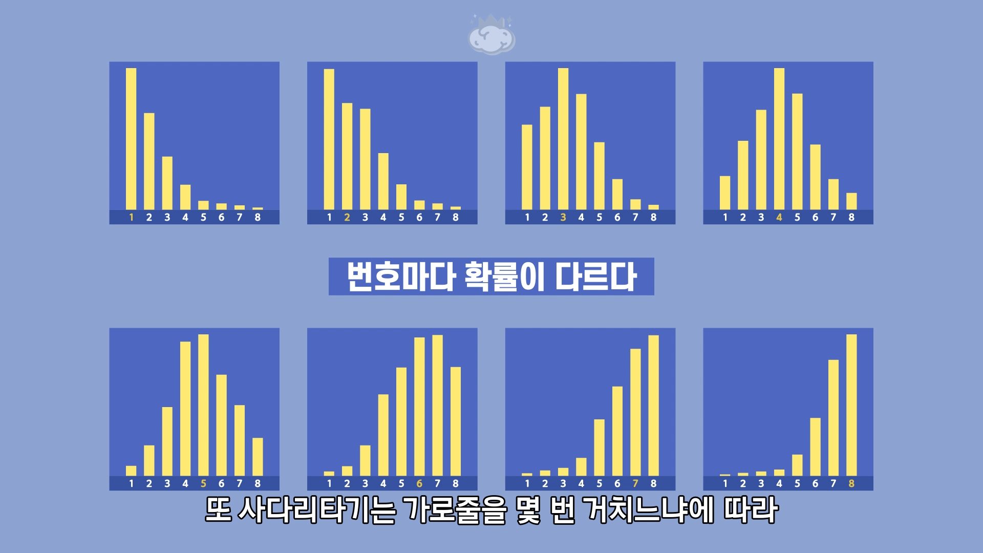 사다리타기는 출발점과 도착점에 대한 확률이 다르고