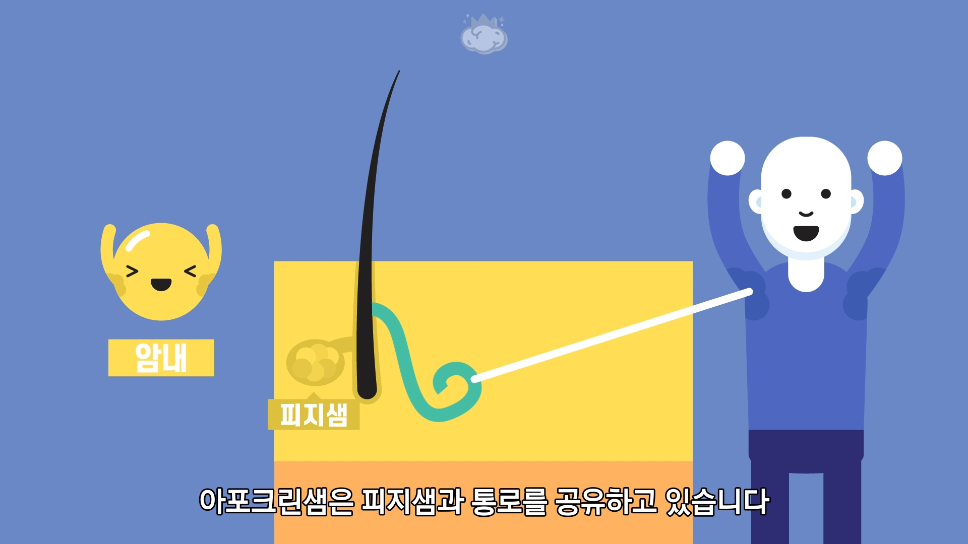 아포크린샘은 피지샘과 통로를 공유하고 있습니다