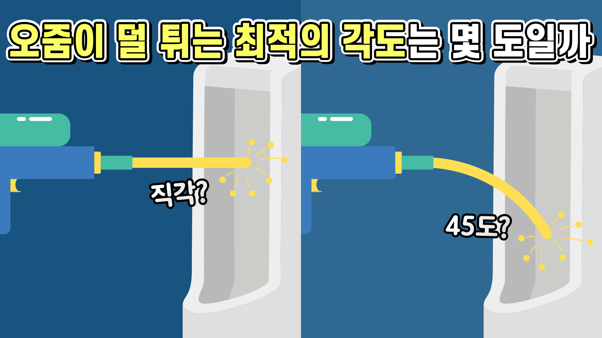 수직에서 45도 각도로 쌌을 때 오줌이 더 많이 튀었기 때문에
