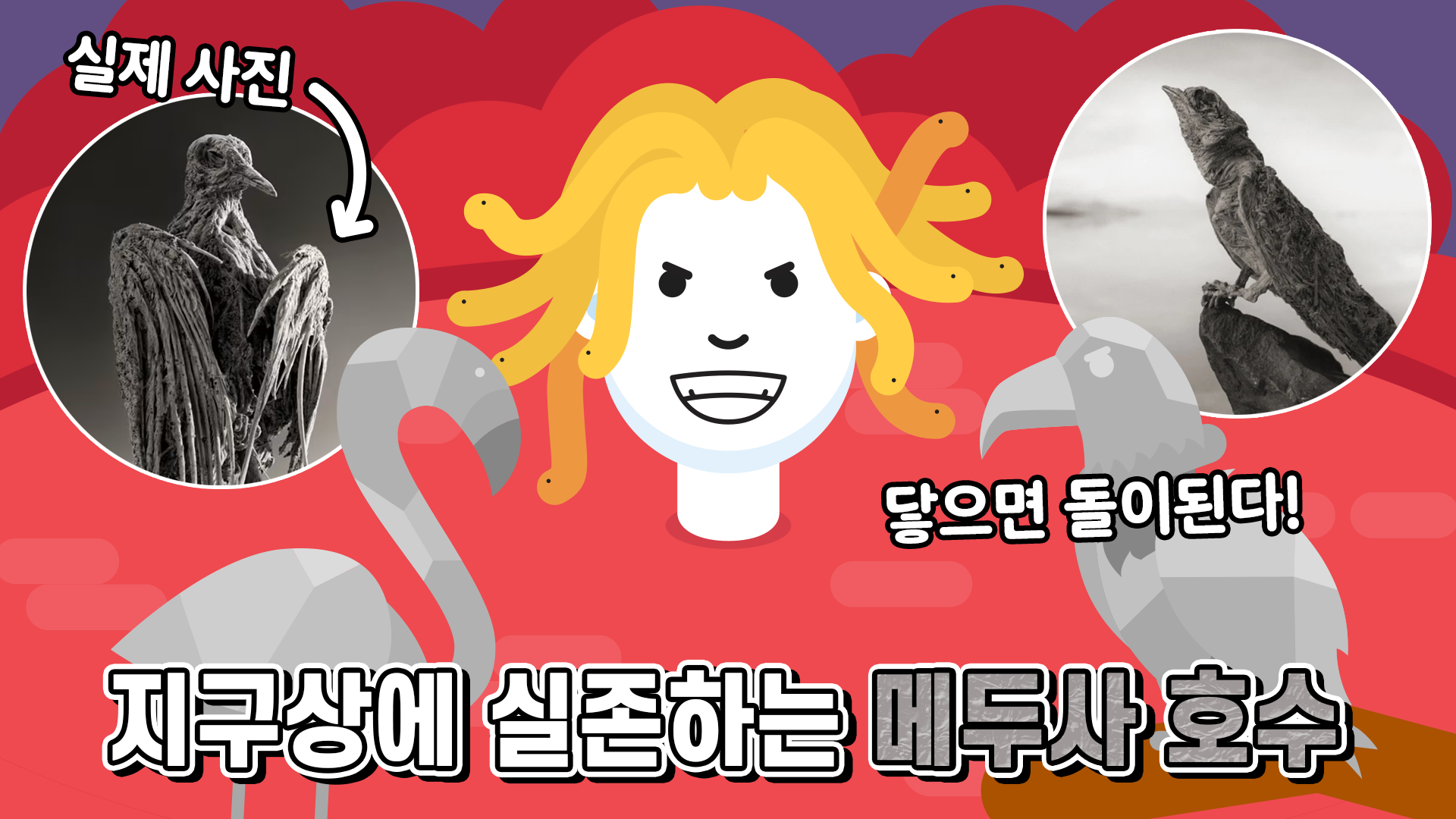 홍학이 마치 메두사를 보고 돌이 되어버린 것 같다고 해서