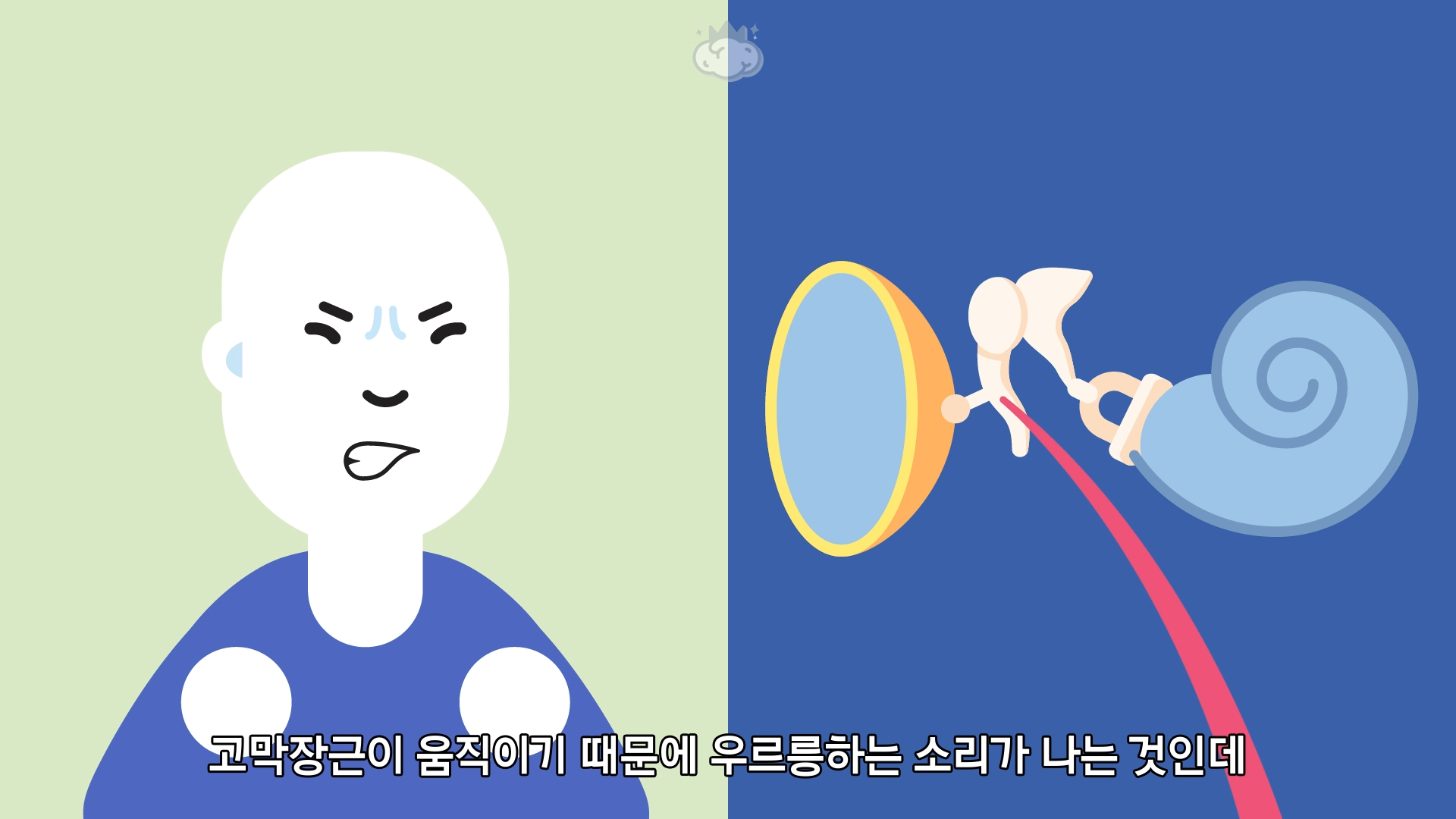 고막장근이 움직이기 때문에 우르릉하는 소리가 나는 것인데