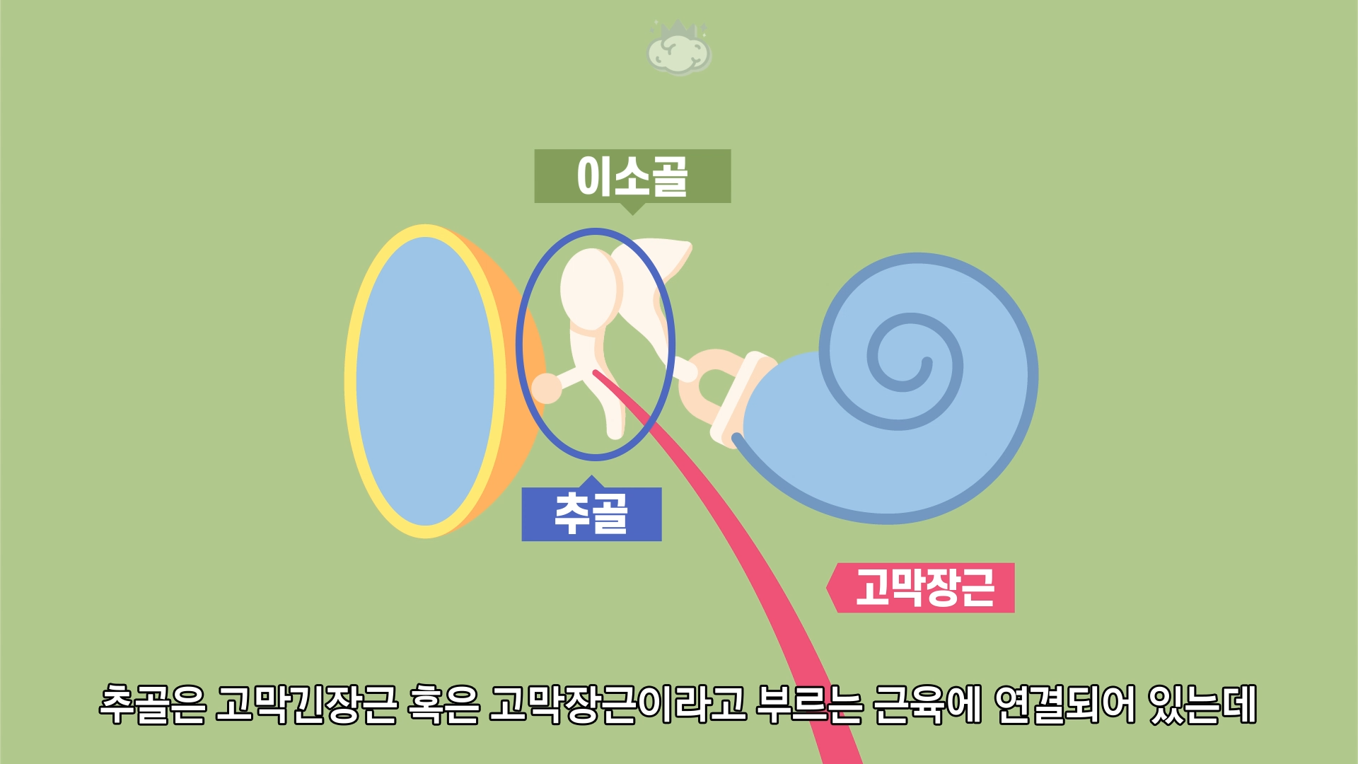 추골은 고막긴장근 혹은 고막장근이라고 부르는 근육에 연결되어 있는데