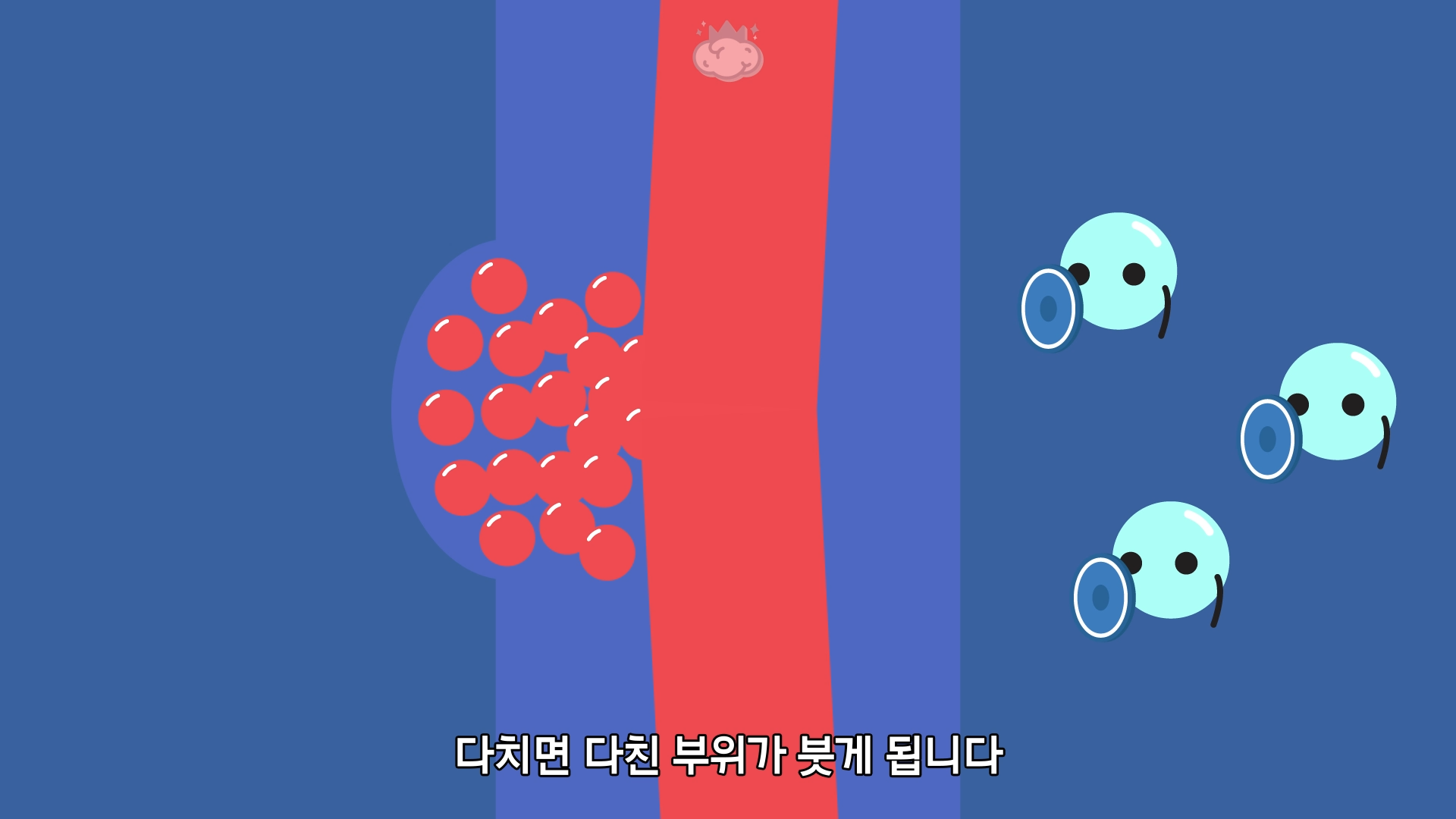 다치면 다친 부위가 붓게 됩니다