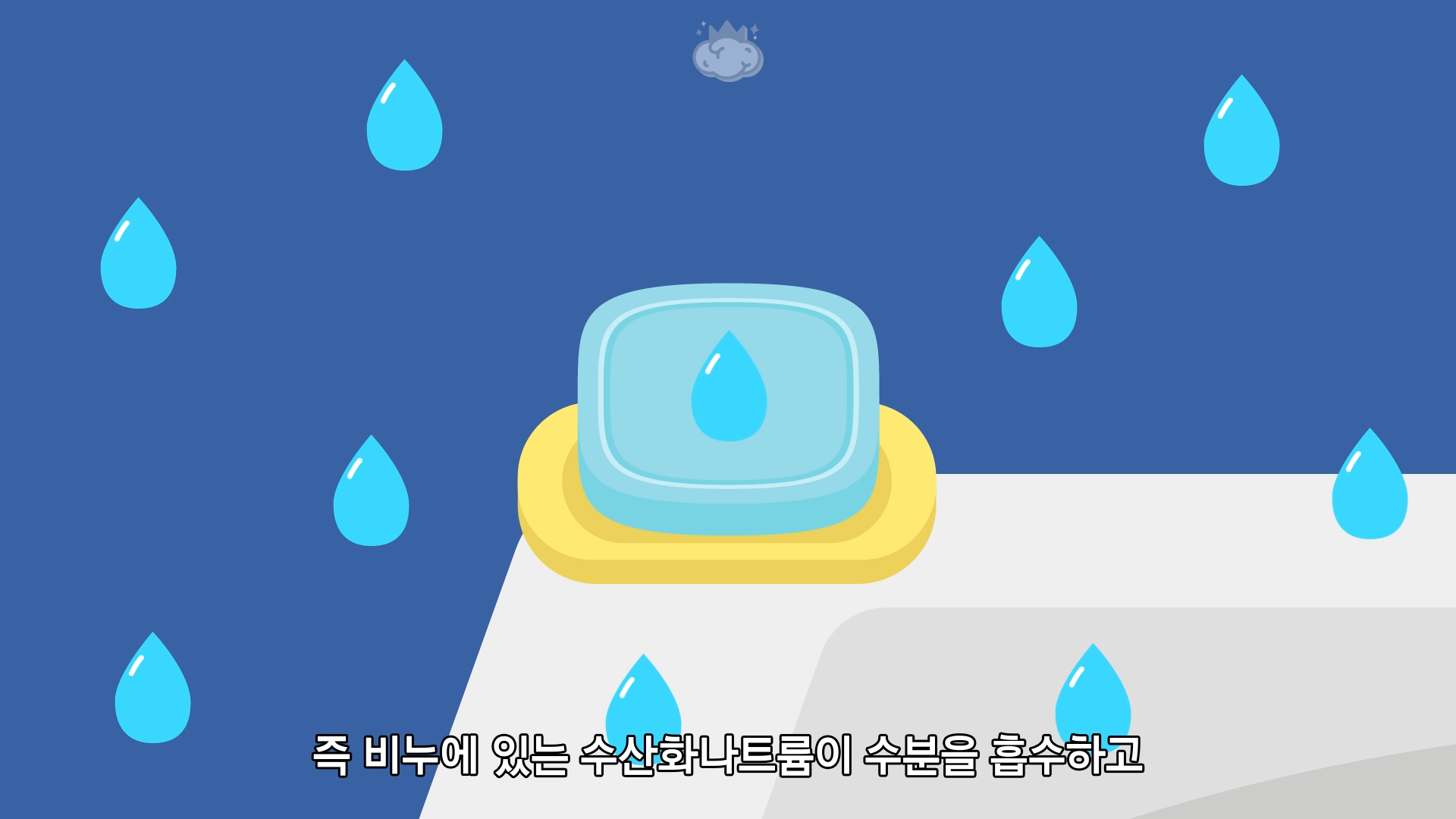 즉 비누에 있는 수산화나트륨이 수분을 흡수하고
