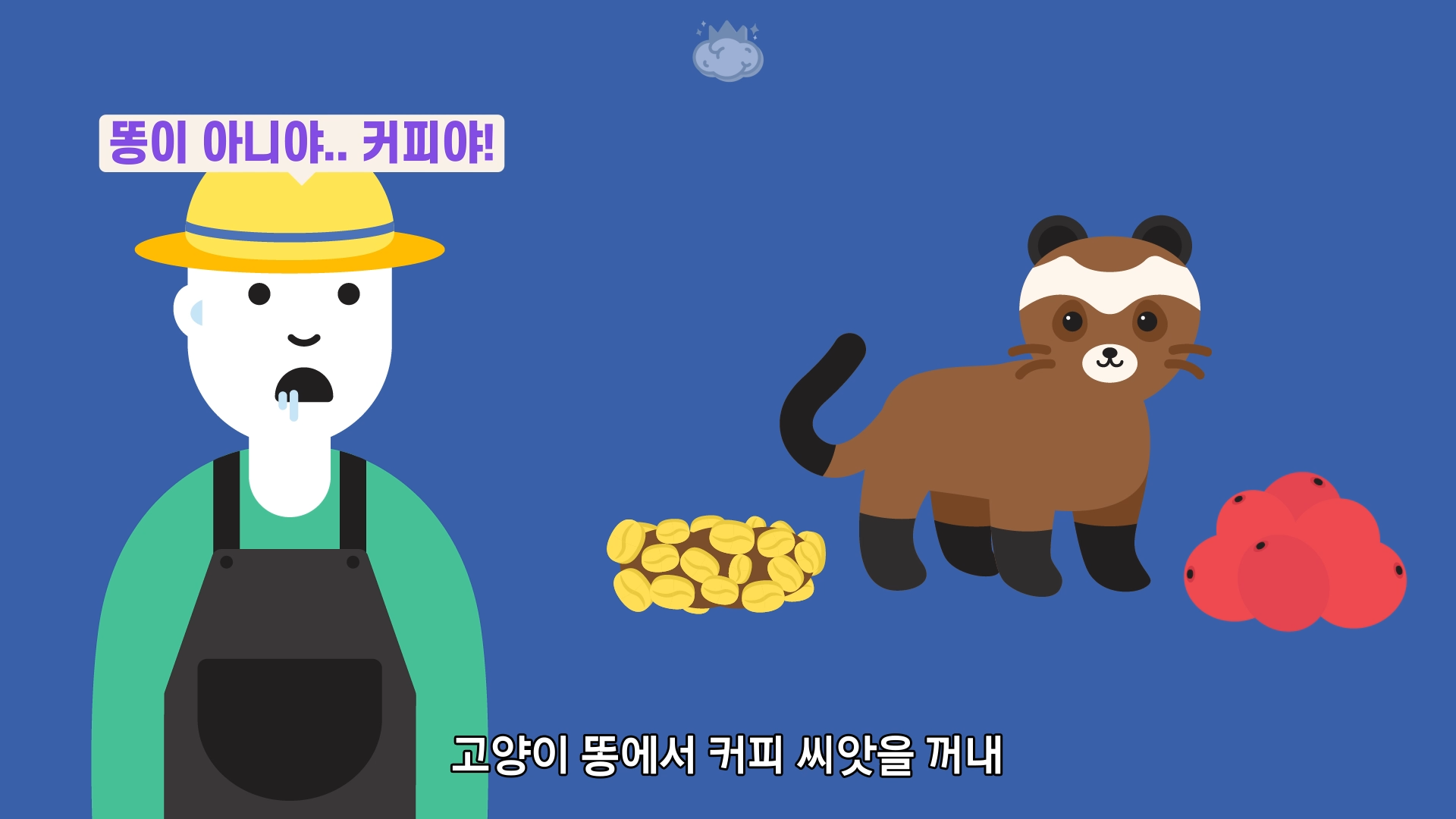 그러던 중 사향고양이가 커피 열매를 먹고 똥을 사면