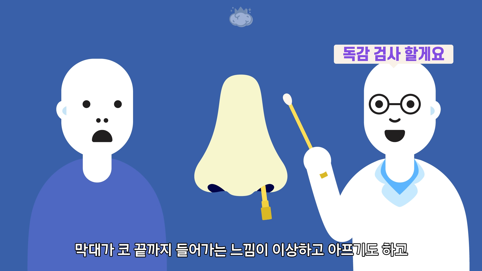 막대가 코 끝까지 들어가는 느낌이 이상하고 아프기도 하고