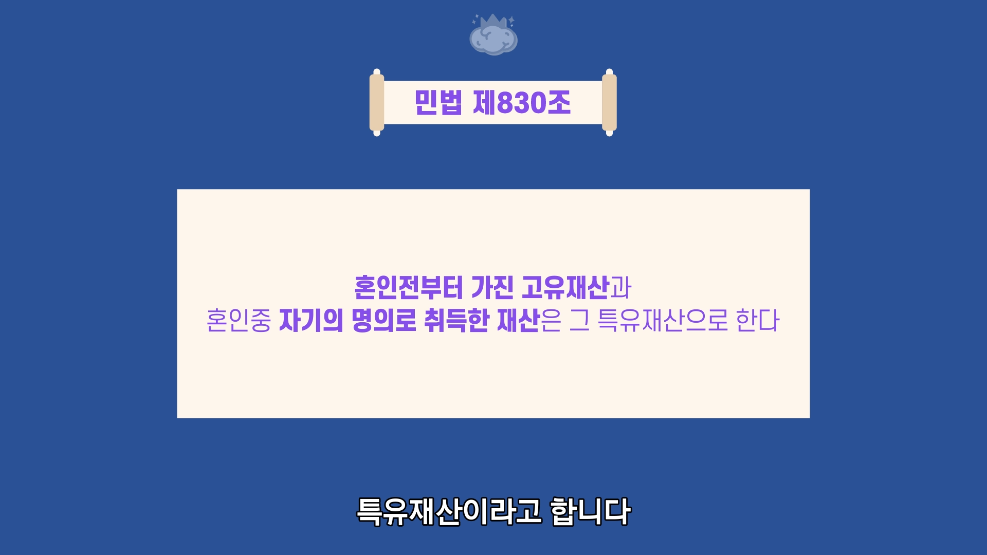 특유재산은 원칙적으로는 재산분할의 대상이 되지 않습니다
