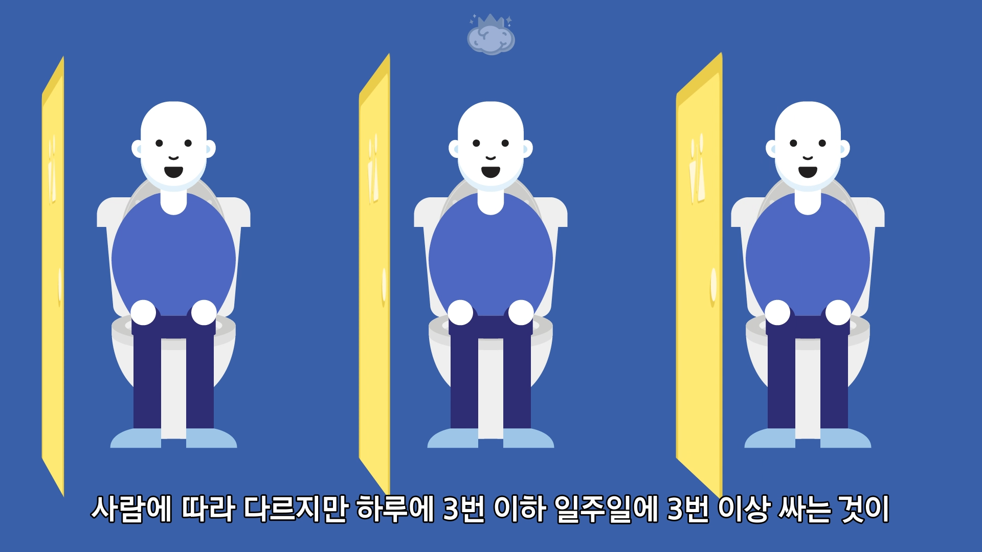 사람에 따라 다르지만 하루에 3번 이하 일주일에 3번 이상 싸는 것이