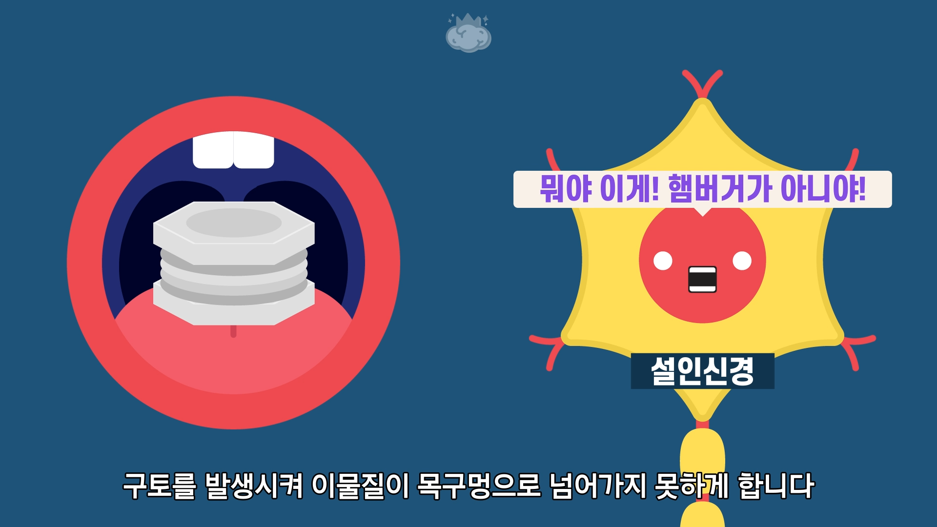 구토를 발생시켜 이물질이 목구멍으로 넘어가지 못하게 합니다